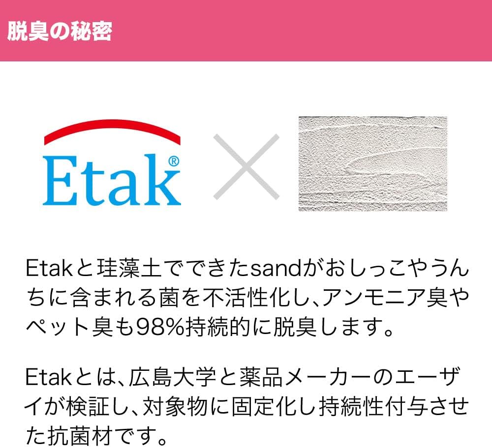 オシッコは 繰り返し乾燥!「Etak」配合の砂で 抗菌を持続!